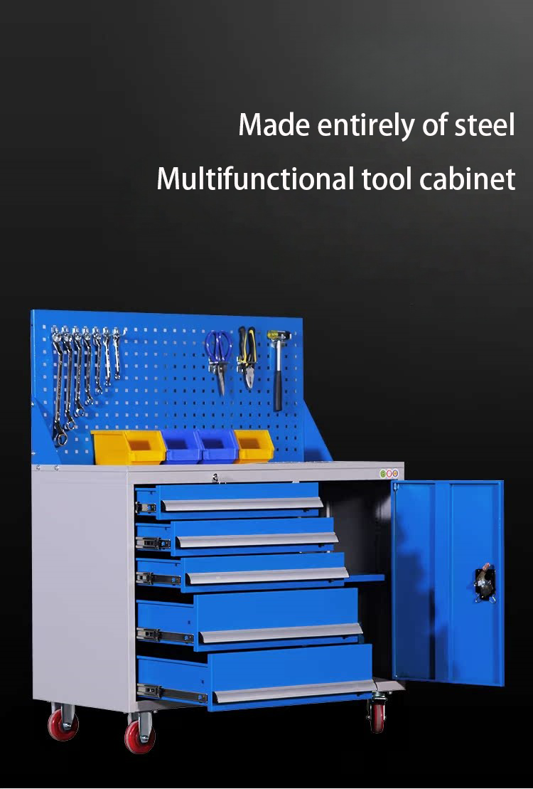 Grey blue left five draw right one door tool cabinet